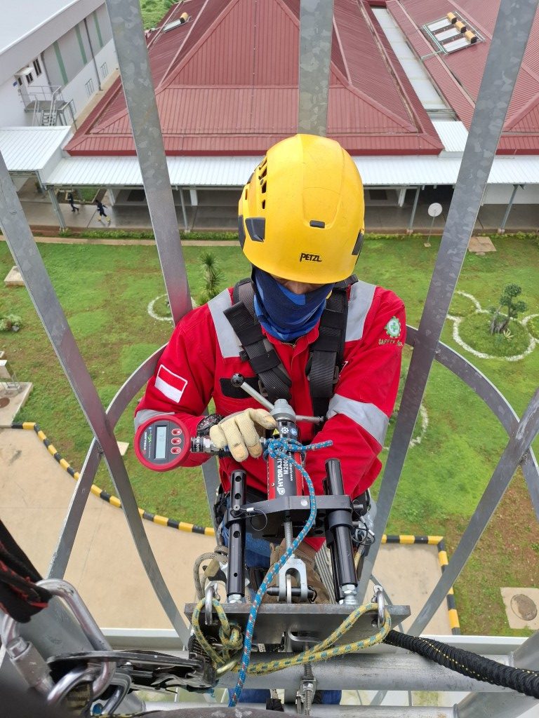 - Memastikan titik anchor dan sistem lifeline memenuhi kekuatan tarik minimal sesuai standar